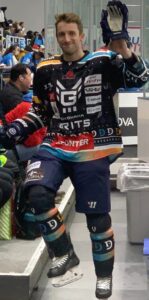 Hazel Riki after his second goal skated right past Grits Gang seats celebrating.